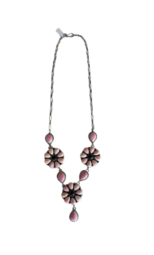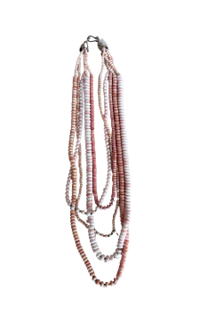 SS- Sterling Silver+Pink Conch Multi Strand Necklace