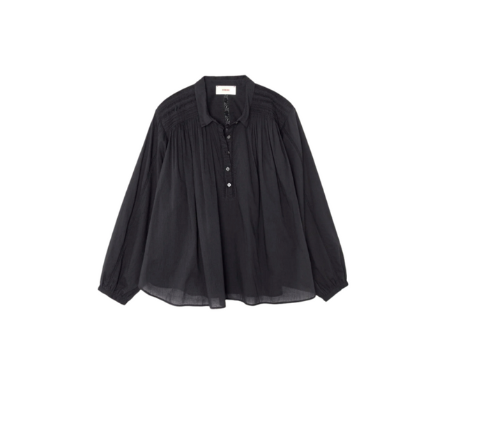 Frame- Smocked Collarless Blouse