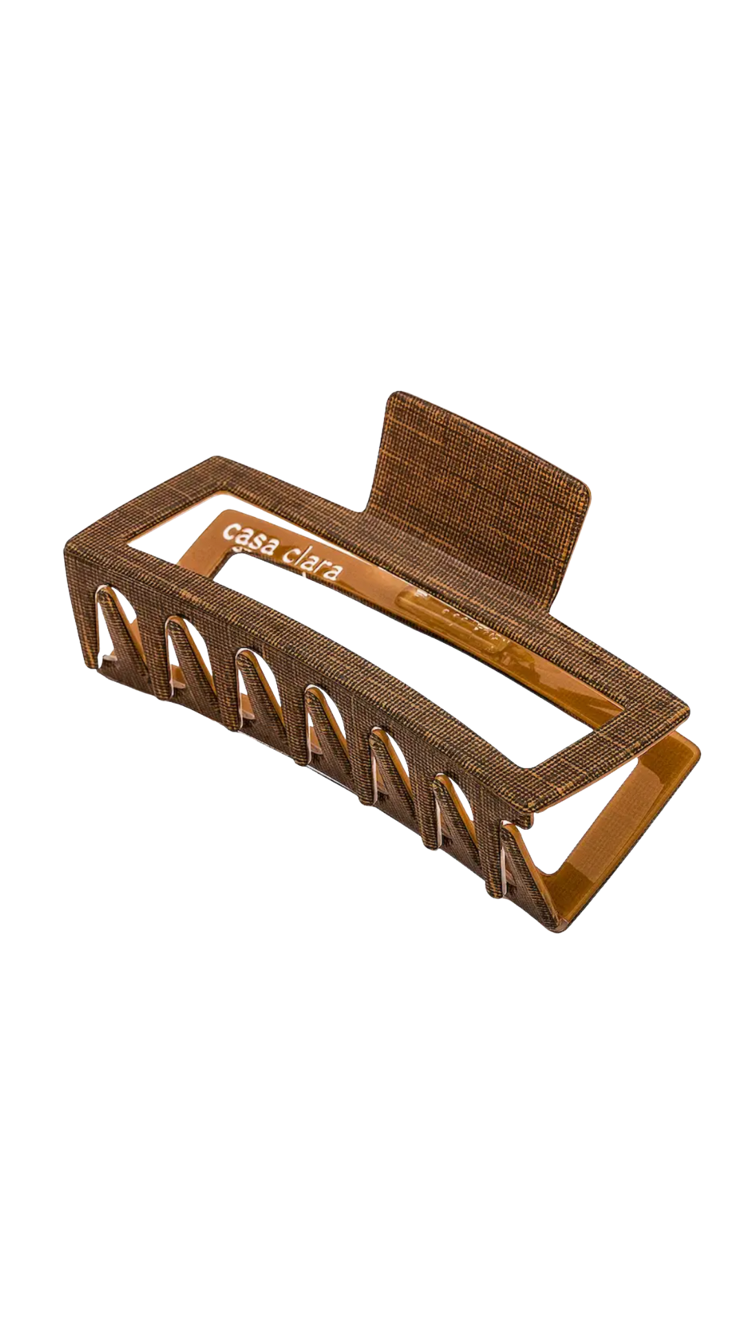 Made of recycled acetate, this hair claw features a geometric design with sturdy claws to hold hair tight.