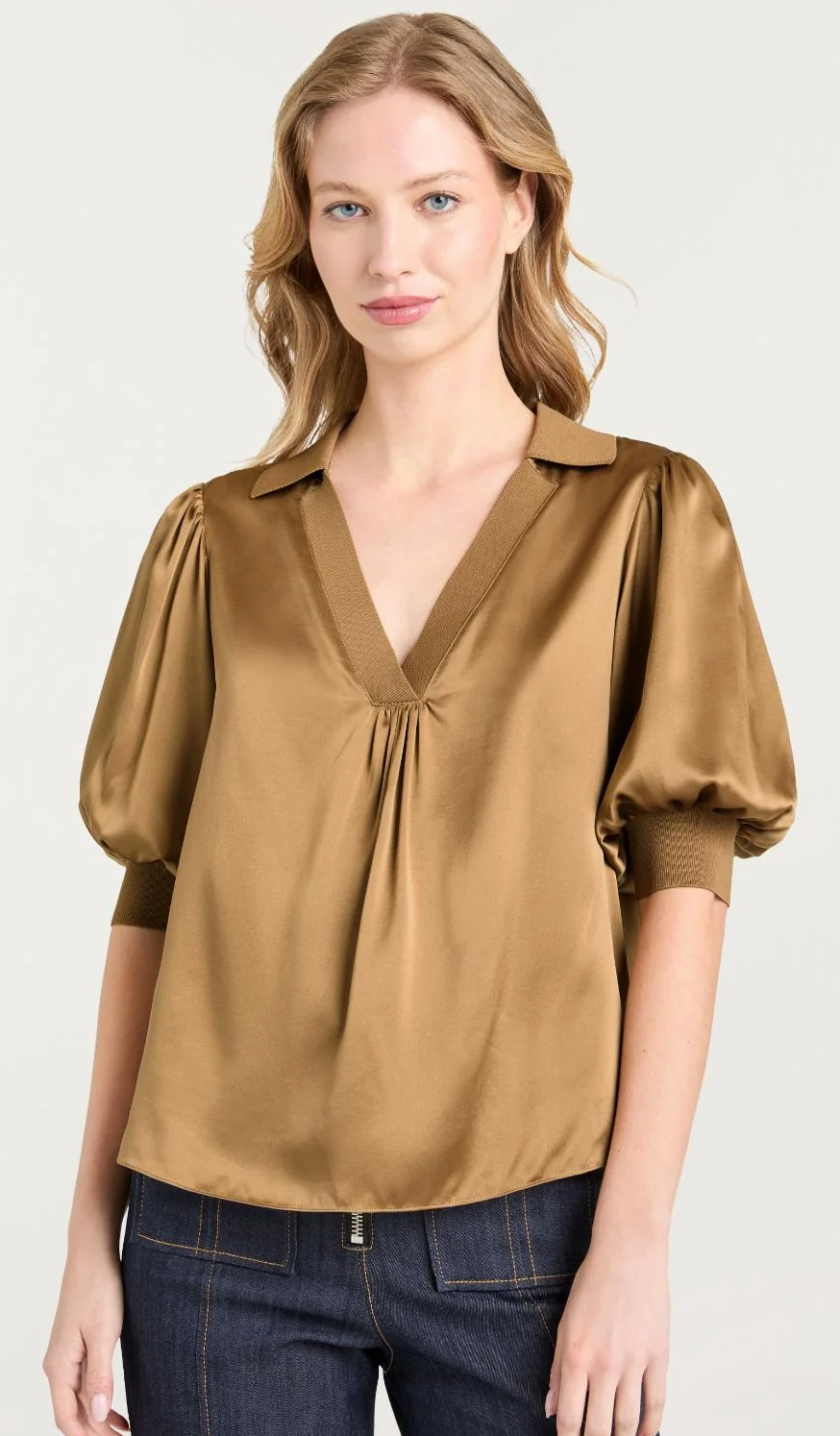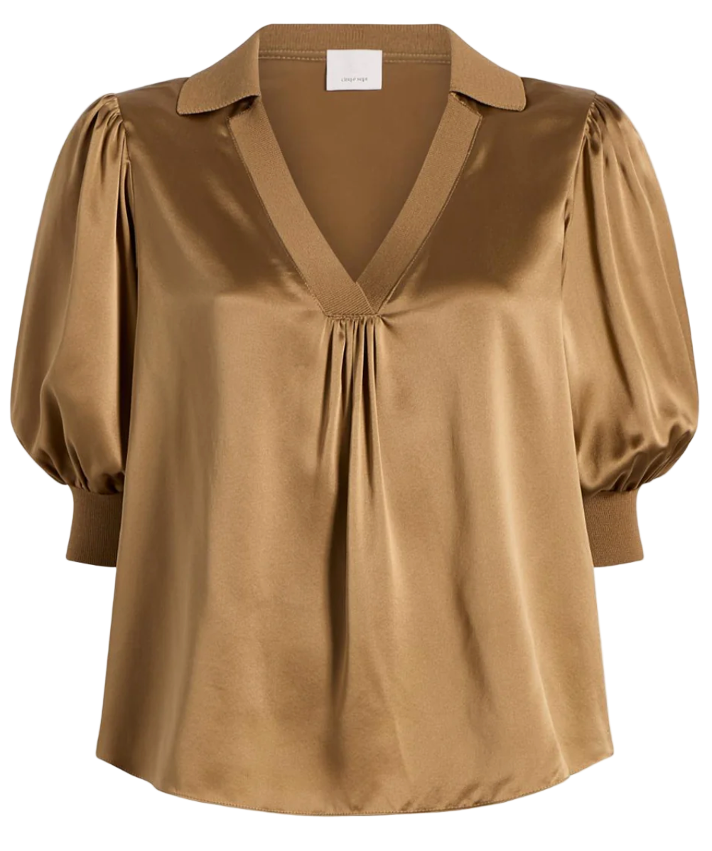 The Weldon Top is an elevated autumnal blouse that features elegant short sleeves. Designed with a silky relaxed fit and a flattering V-neckline, it offers effortless sophistication for any type of outing, day or night. Don't miss this staple for your seasonal wardrobe.