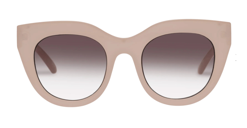A favourite of Meghan Markle and Olivia Palermo, the AIR HEART silhouette is an iconic Le Specs style. With oversized and dramatic proportions reminiscent of a cat eye, the style is designed with a thick semi-translucent tan frame and luxurious metal top bar inlay, then fitted with premium zero base smoke flat lenses. The perfect statement sunglass to suit all face shapes.