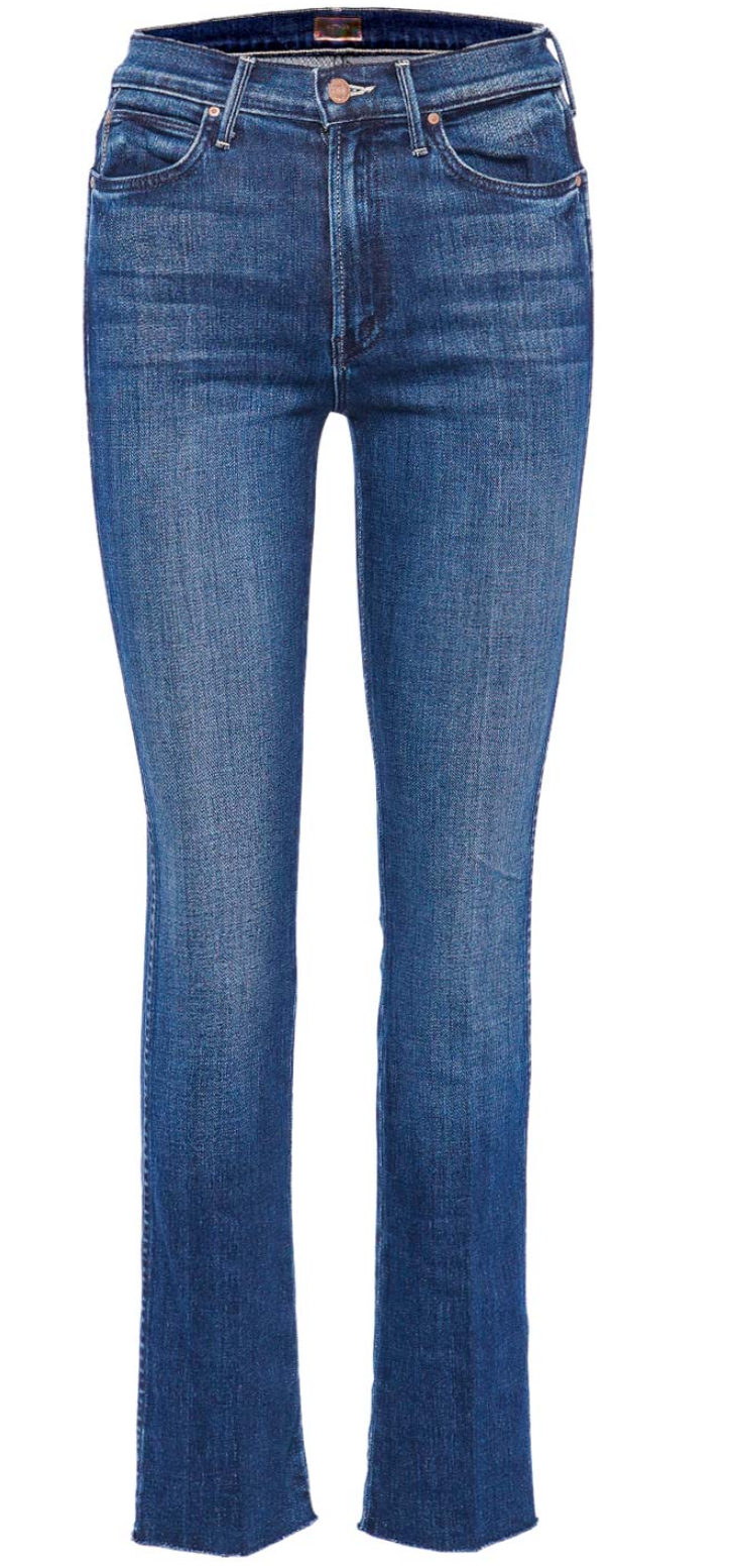 This jean has a high-rise straight leg with a 31-inch inseam and a frayed hem. Cut from denim with a touch of stretch, Sake To Me, is a dark blue wash with whiskering and fading at the knee