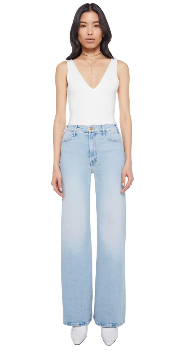 Full circle moment. 70s-inspired wide leg jeans with a high rise, zip fly, 32-inch inseam and a clean hem. Cut from stretch denim, Complete 360 is a light blue with subtle fading throughout.