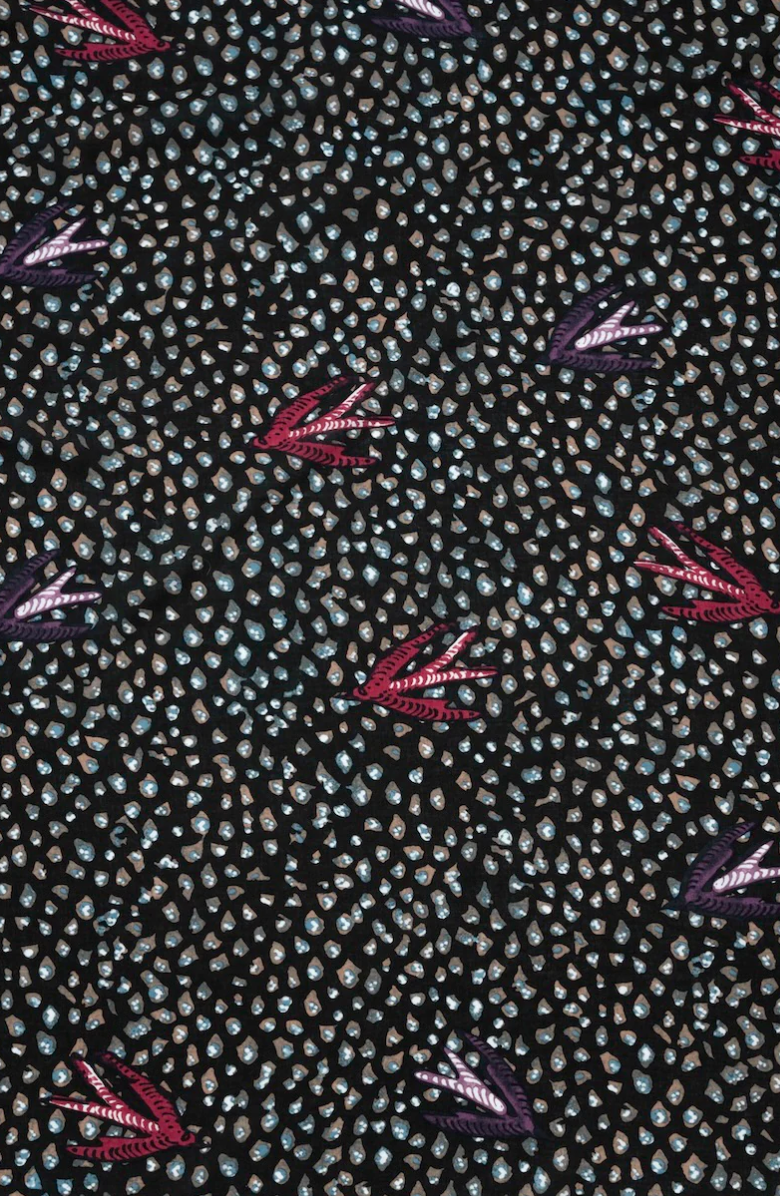 Maxi-length dress with v-neckline and pleated bib. Three-quarter length sleeves.