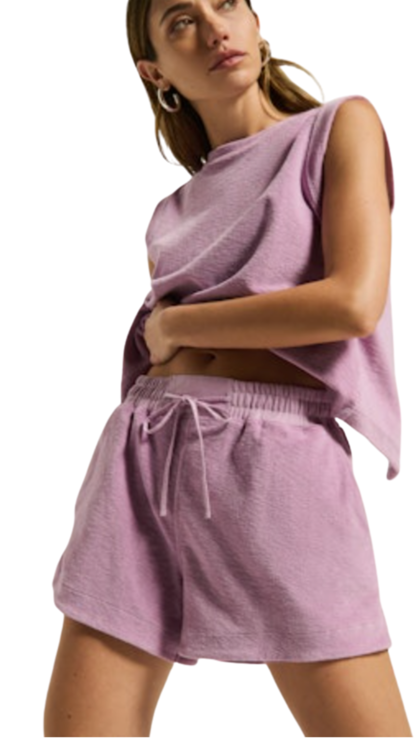 The Wren Short is your go-to lounge essential for when it's just too hot for sweats. Cut in soft cotton velour with a contrast elasticated waistband, these breezy shorts make for a very elevated poolside set when paired with the Nara Muscle Tank. This one comes in Lavender.