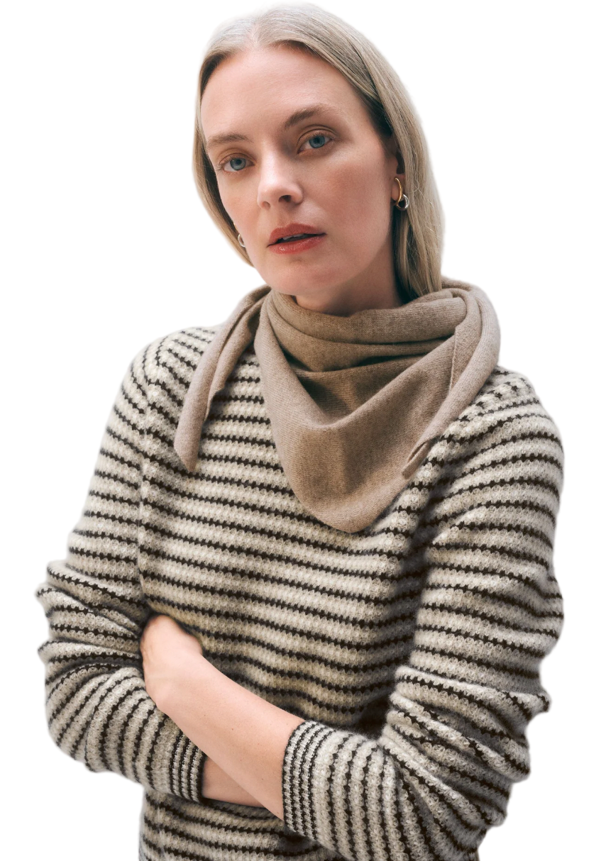 Lightweight versatility. This pure cashmere neckerchief drapes softly and ties with ease—style it around the neck, in the hair, or on a bag for a refined finish.