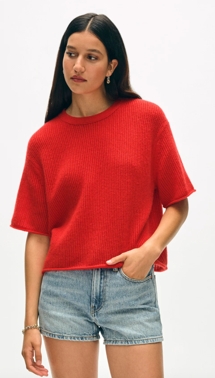 Spice up your wardrobe with the oversized drop shoulder waffle cashmere crewneck. Stay cozy in high-quality cashmere while adding a playful touch to your look. Perfect for any occasion, this tee combines comfort and style for a truly unique piece.