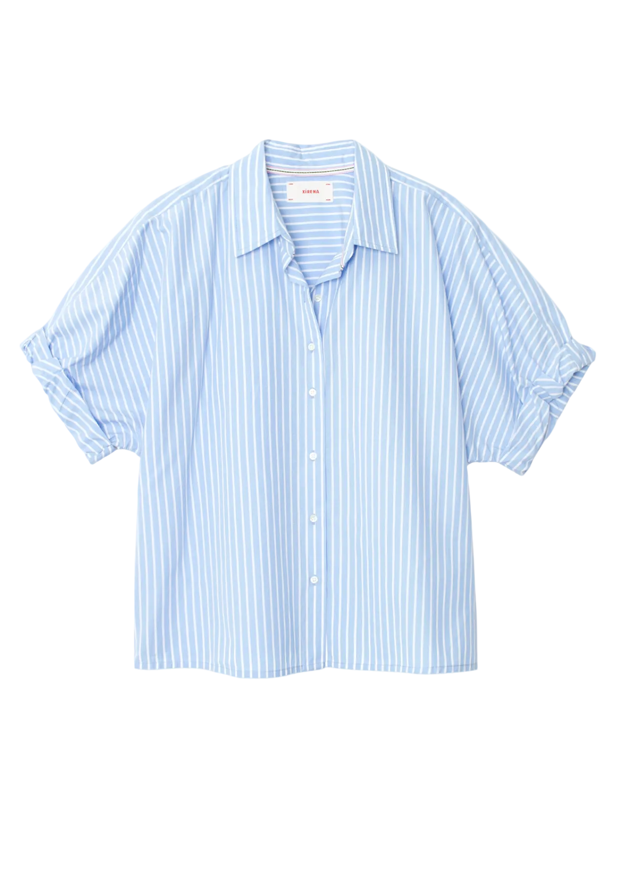 Striped Delight. Teddy is updated this season in a crisp cotton stripe. Teddy is an easy, cropped button-front shirt with a boxy fit, rolled sleeves, and back yoke.